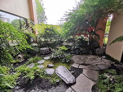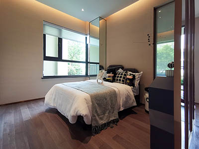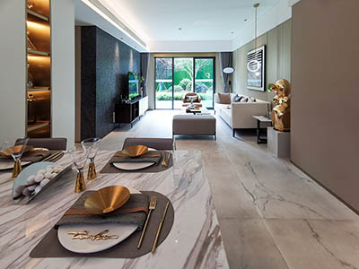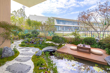园林规划有林下、秘境、艺术、竹里、禅意、休憩、乐活、阳光等八大花园,礼仪两门厅、中心滨水会客厅、樱花双水岸、绿林漫步和艺术滨水双中庭,1200米健康跑环,林与水错落交织,于城市之中打造生态绿意生活。