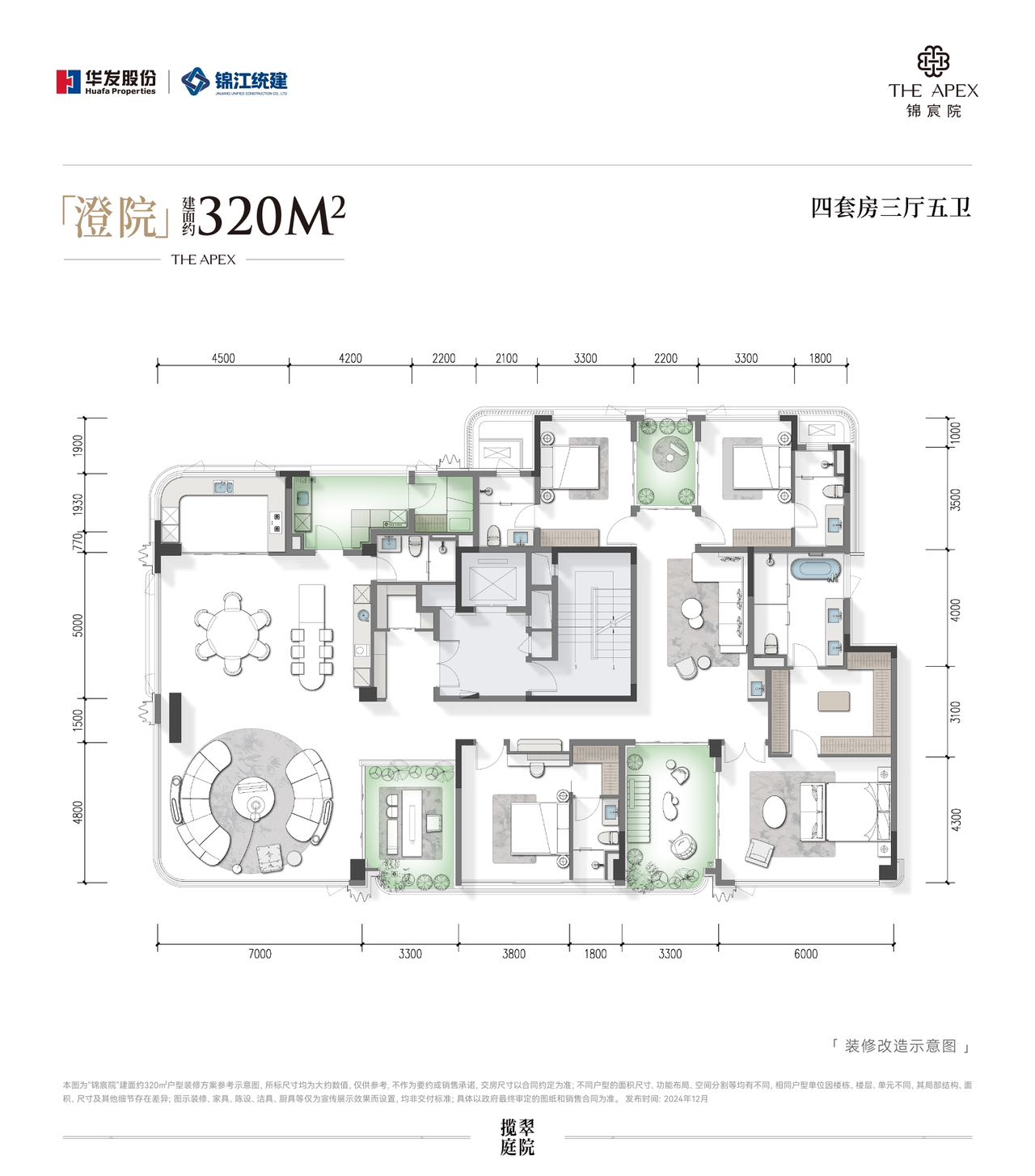 在户型设计上不仅有私梯入户、LDKB多场景空间等优质产品设计,更有大入户花园/光厅赠送,约103%的高实得率,更重要的是当属“院+境”室内外一体的多重院落体系,以及符合高净值家庭全生命周期的户型面积。