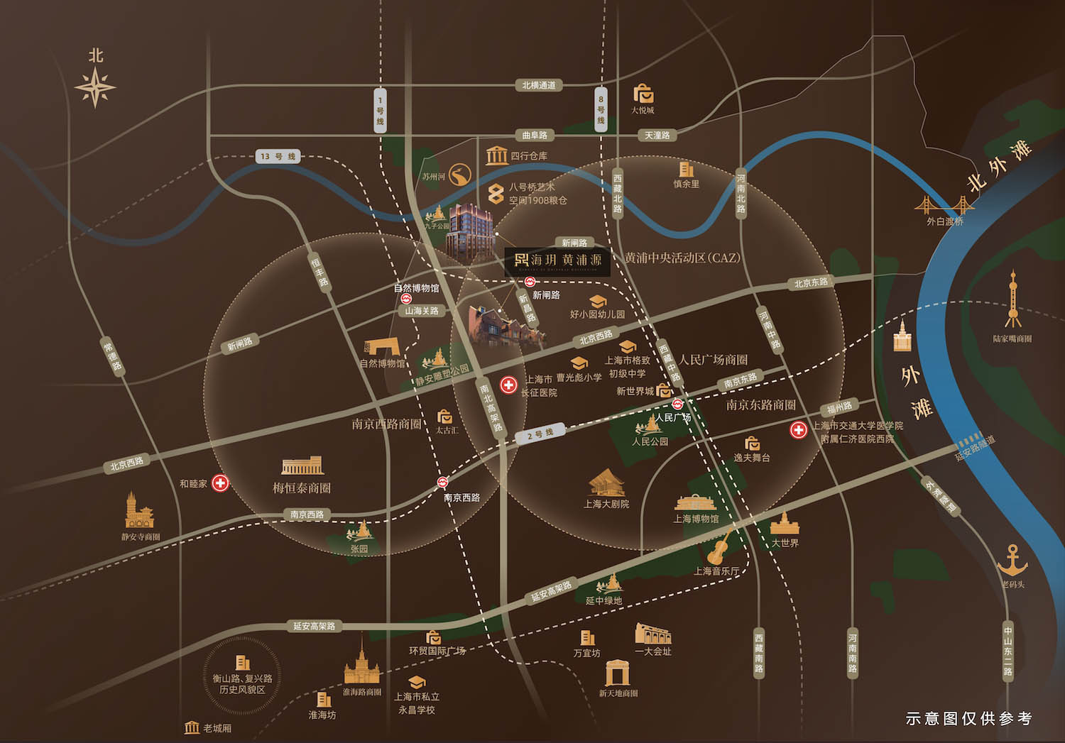 北邻苏州河,可欣赏苏州河畔的宁静风光!除此之外,静安雕塑公园、自然博物馆、上海博物馆、上海大剧院等文化休闲资源,长征医院、仁济医院西院等三甲医院资源,1号线、13号线换乘大站人民广场站等都环绕在周边,十分便捷。