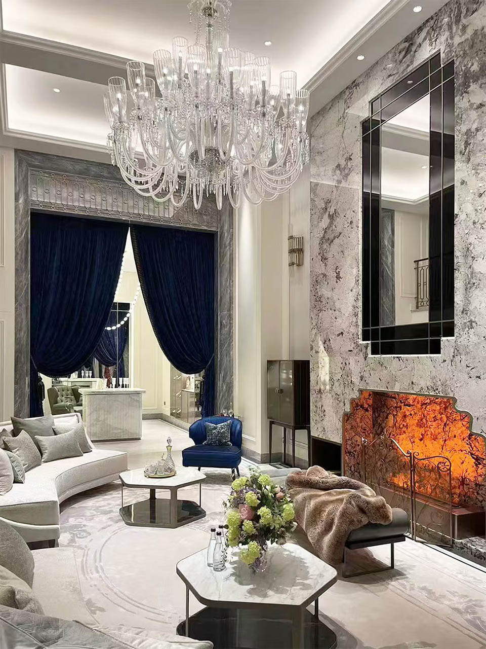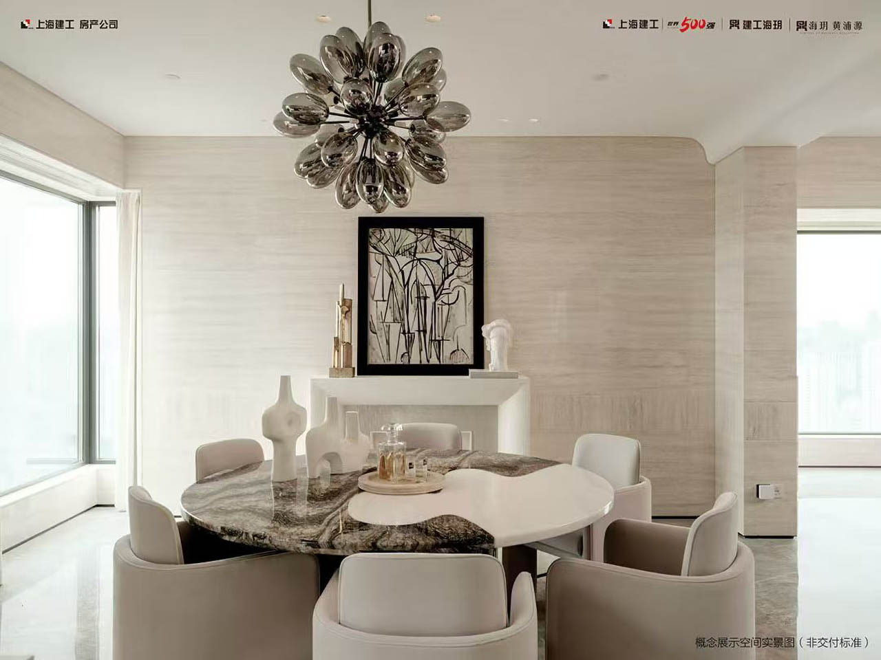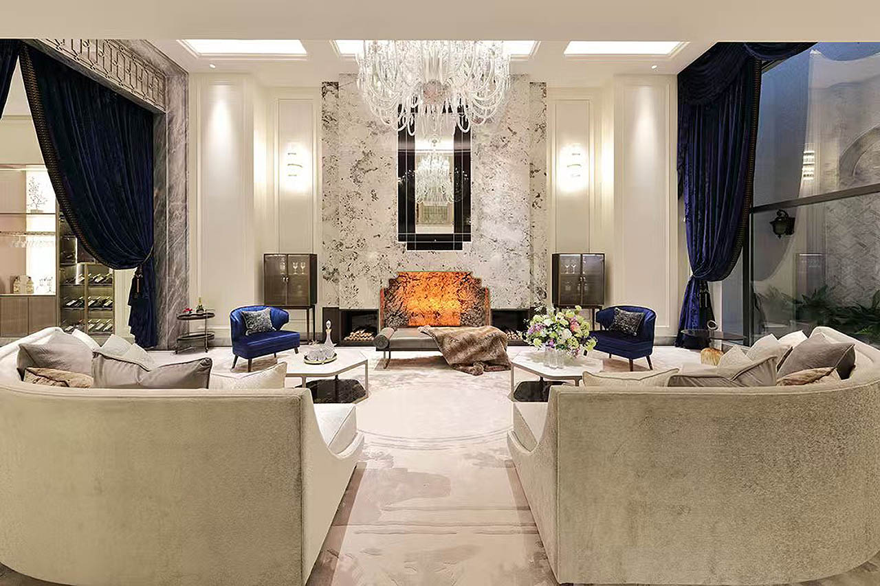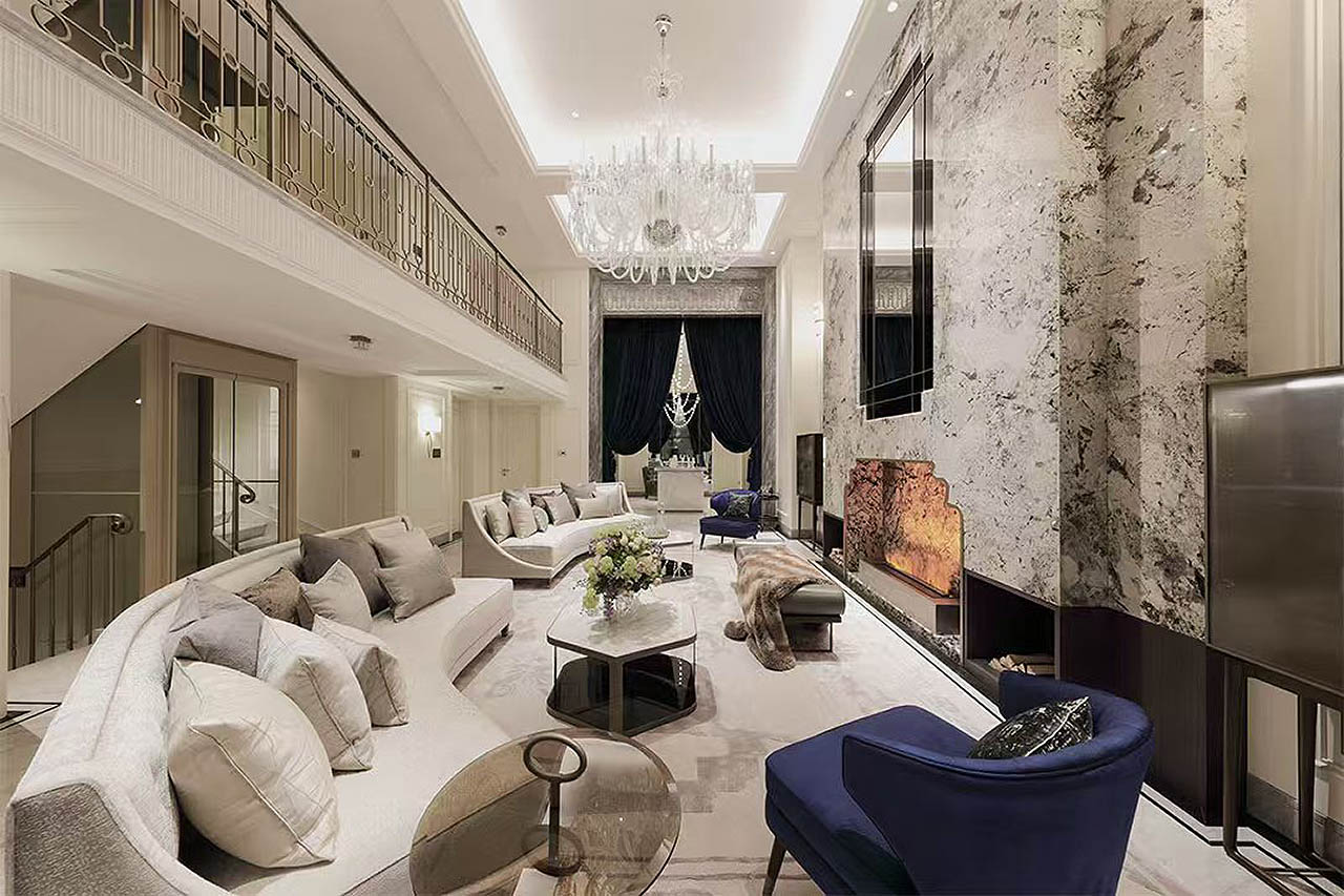 采用石材、岩板及木饰材料,打造现代极简的风格,老虎玉、亚马逊绿等样式的石材或岩板透着独特的现代风情,高质木饰面展现着纯粹的魅力,天然美感与自然质感糅合,艺术性与设计感兼具,处处彰显着独特品味与不凡格调。