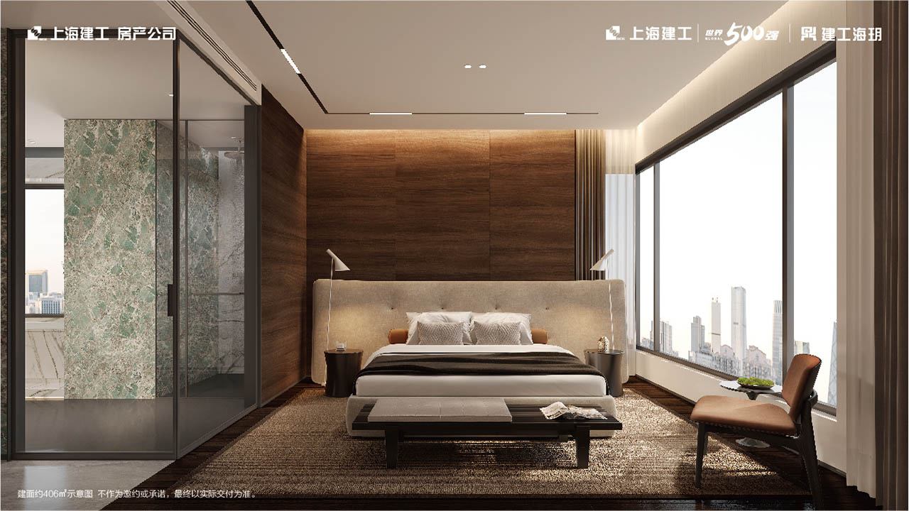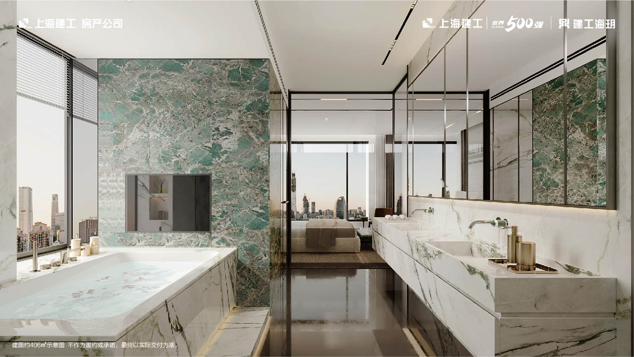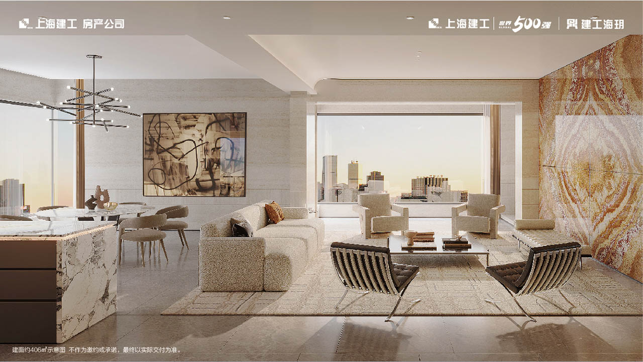 以约165米的天际姿态傲居浦西城市之心,处变不惊的内敛与繁华阅尽的雍容,处繁华都市中央,却能独立于喧嚣之外,奢享无界自然丰盈,同时于室内悄然蔓延,以环幕极境而造约400m²“天际孤品”再次迭代层峰时代生活方式。