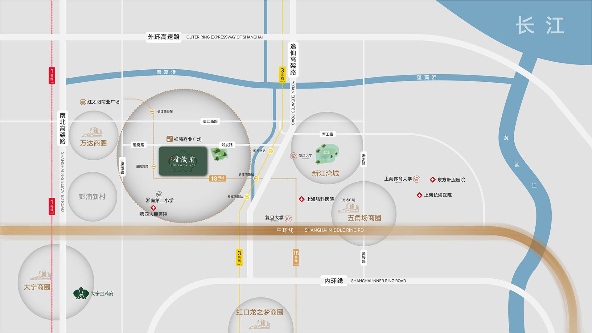 1站抵达新江湾城生态住区,3站直达复旦学术殿堂,11站贯通陆家嘴金融脉搏。毗邻五角场商圈、东外滩人文高地,坐拥大宁文化配套,四区交汇的资源矩阵,构筑商务、教育、商业、生态全维生活圈层。