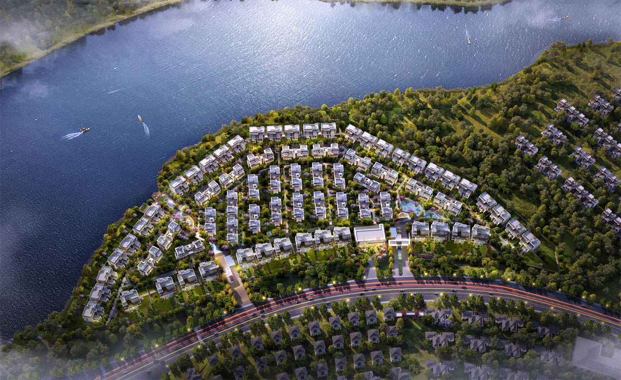 于中铁黑龙滩国际旅游度假园区,营造度假岛居低密度湖畔府邸。全系低密叠拼产品,1栋3户“品字形”布局。毗邻水景主题公园,整体依托天然山林之势,以新亚洲建筑离述当代东方审美需求,内外双重景观融合,打造自然东方院落,形成围合生态居住区,恢弘园景,处处皆景。