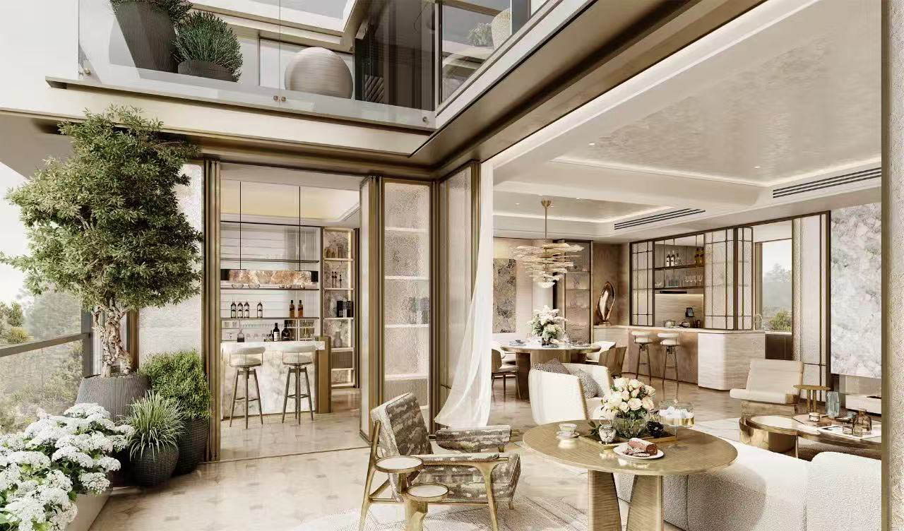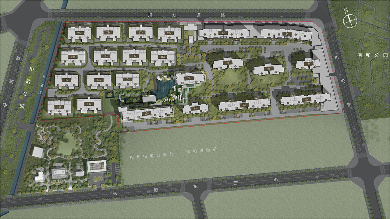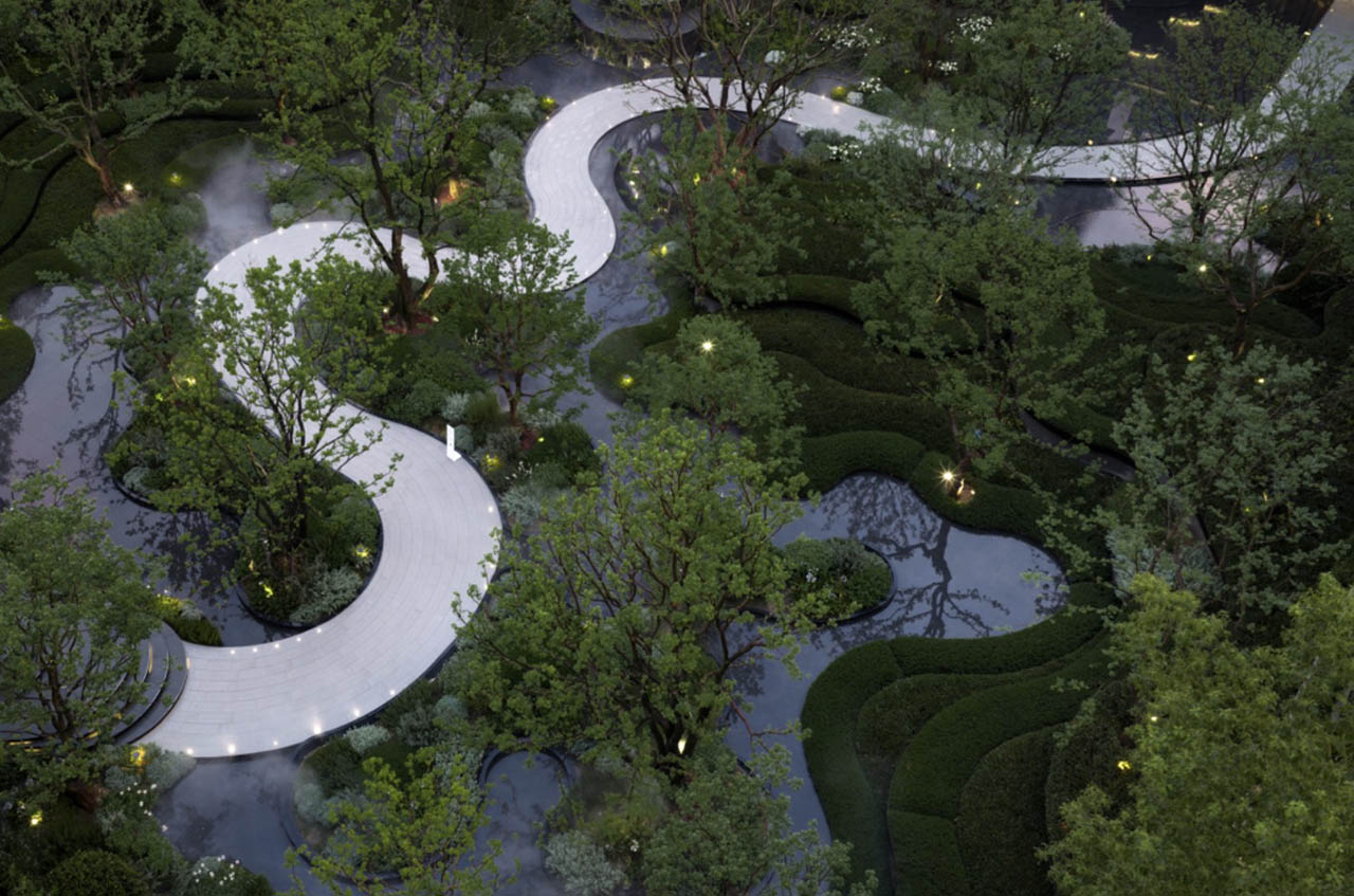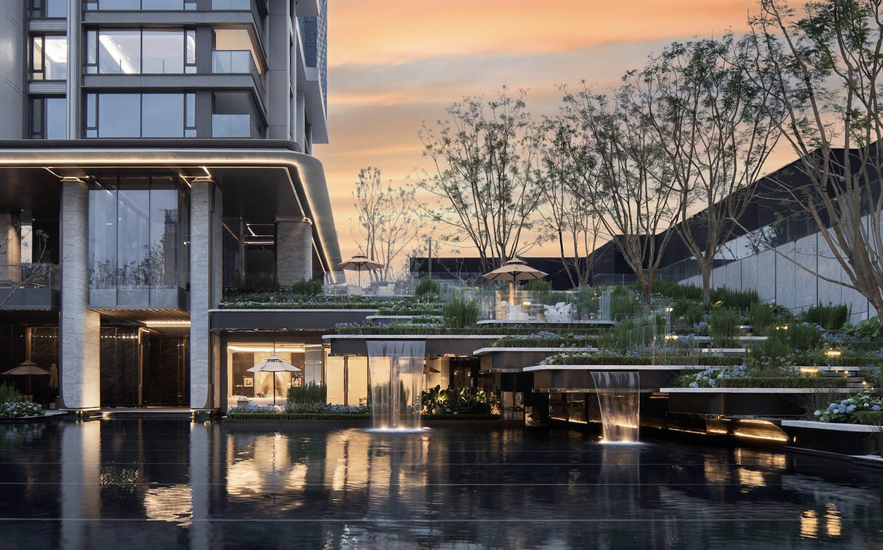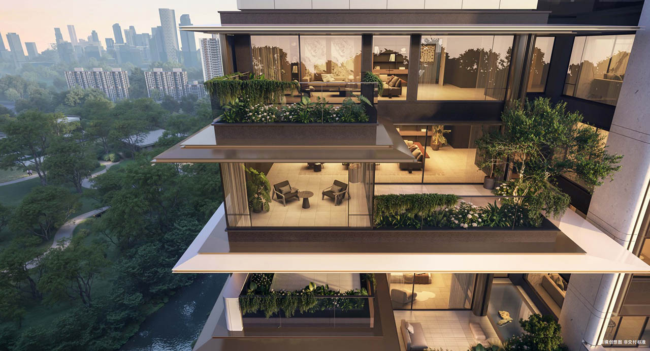 站位万象城东,立于三环内,外部约17亩的市政公园;内部社区多元主题花园中庭;家庭私域多个花园和露台构建的私享空间。园林中布置了红果冬青、朴树、乌桕等名贵树种,水景步道营造出别墅园区的归家仪式感。