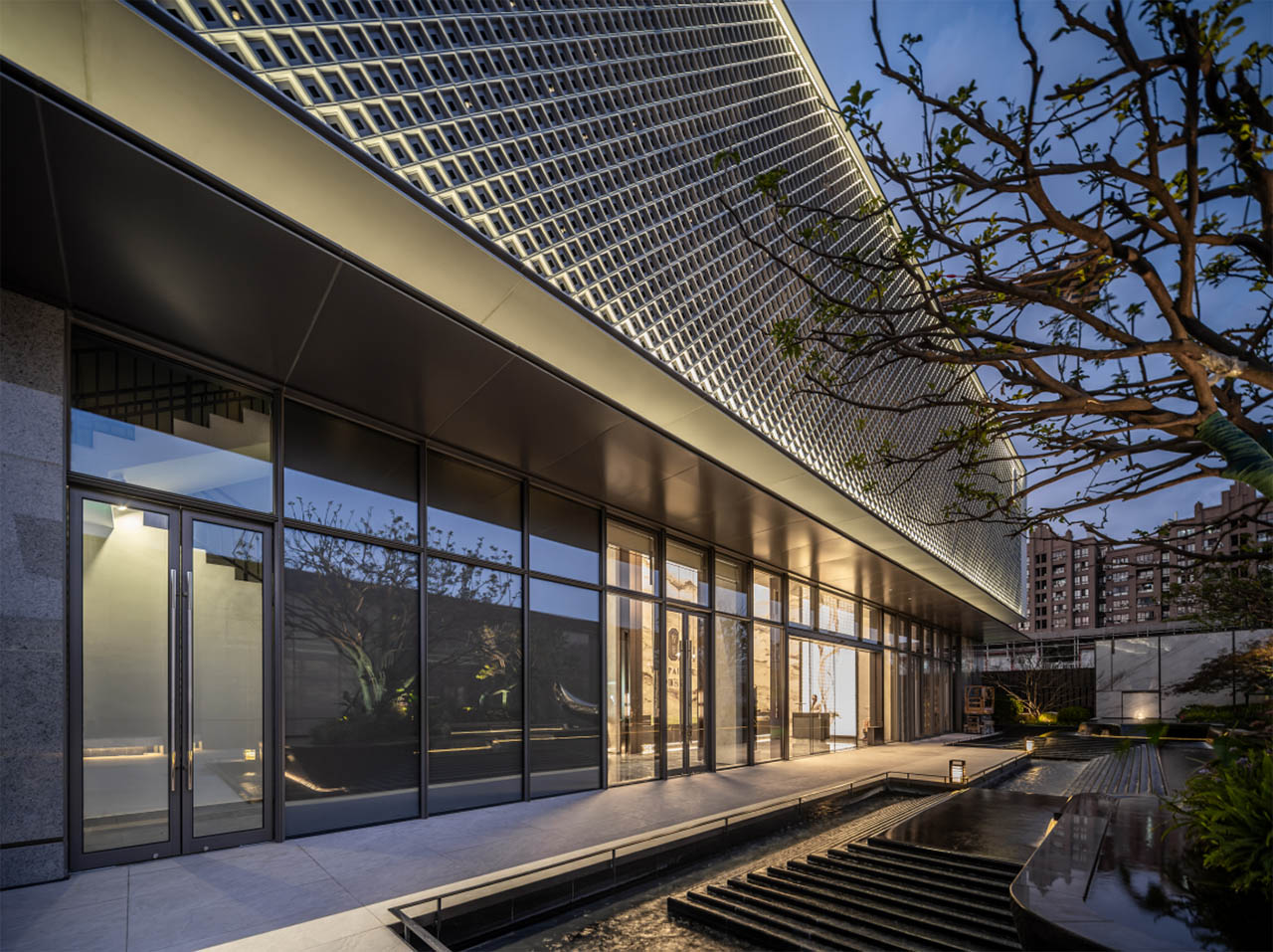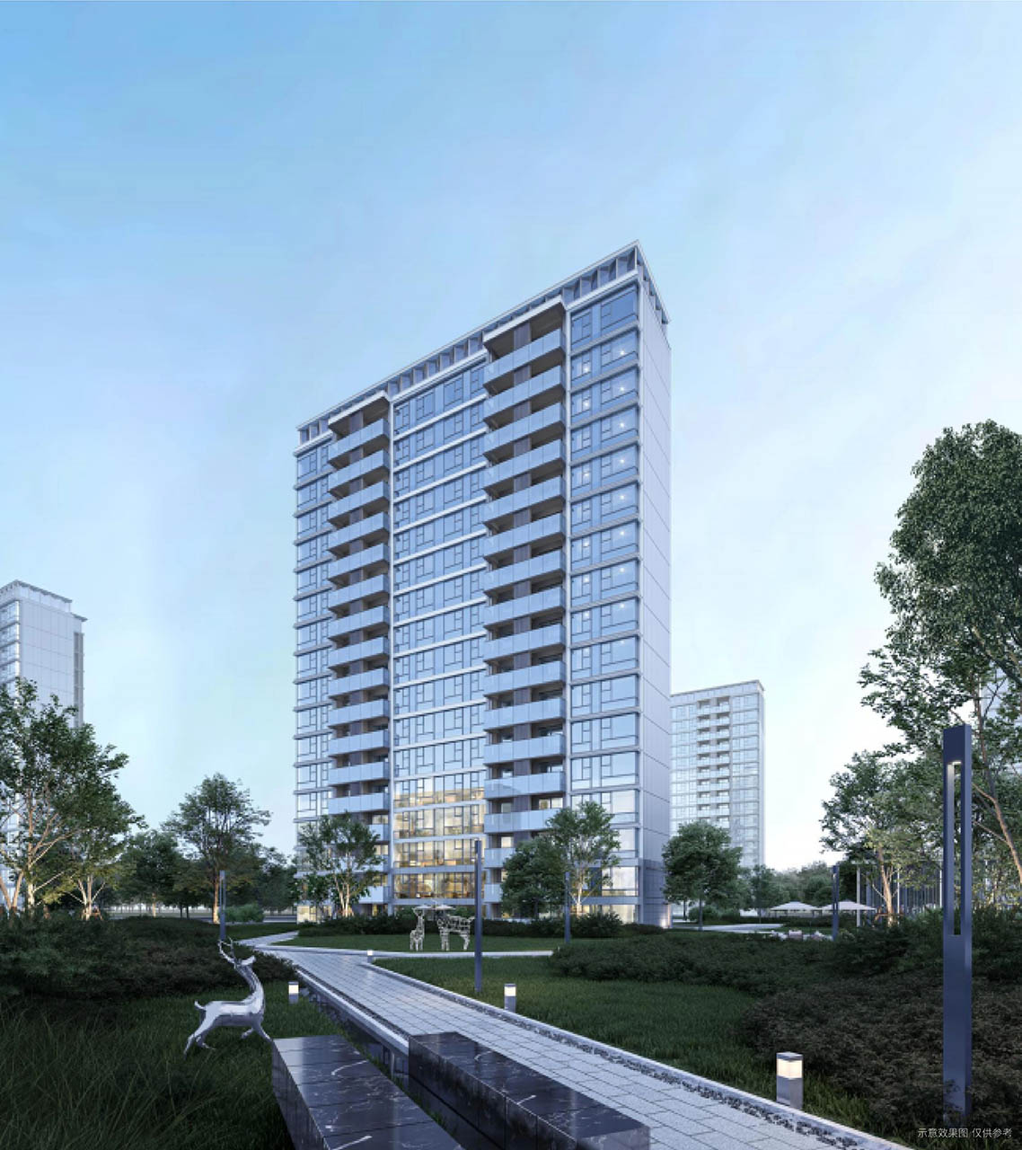 整体建筑立面一二层基座部分为石材,三层及以上主体部分以玻璃+铝板幕墙为主。光感幕墙、立体边框、晶体塔冠,建筑整体效果现代精致,契合当代艺术美学,未来无数人从中环驶过,都能眺望到这道靓丽的城市天际线,这是业主身份的象征。