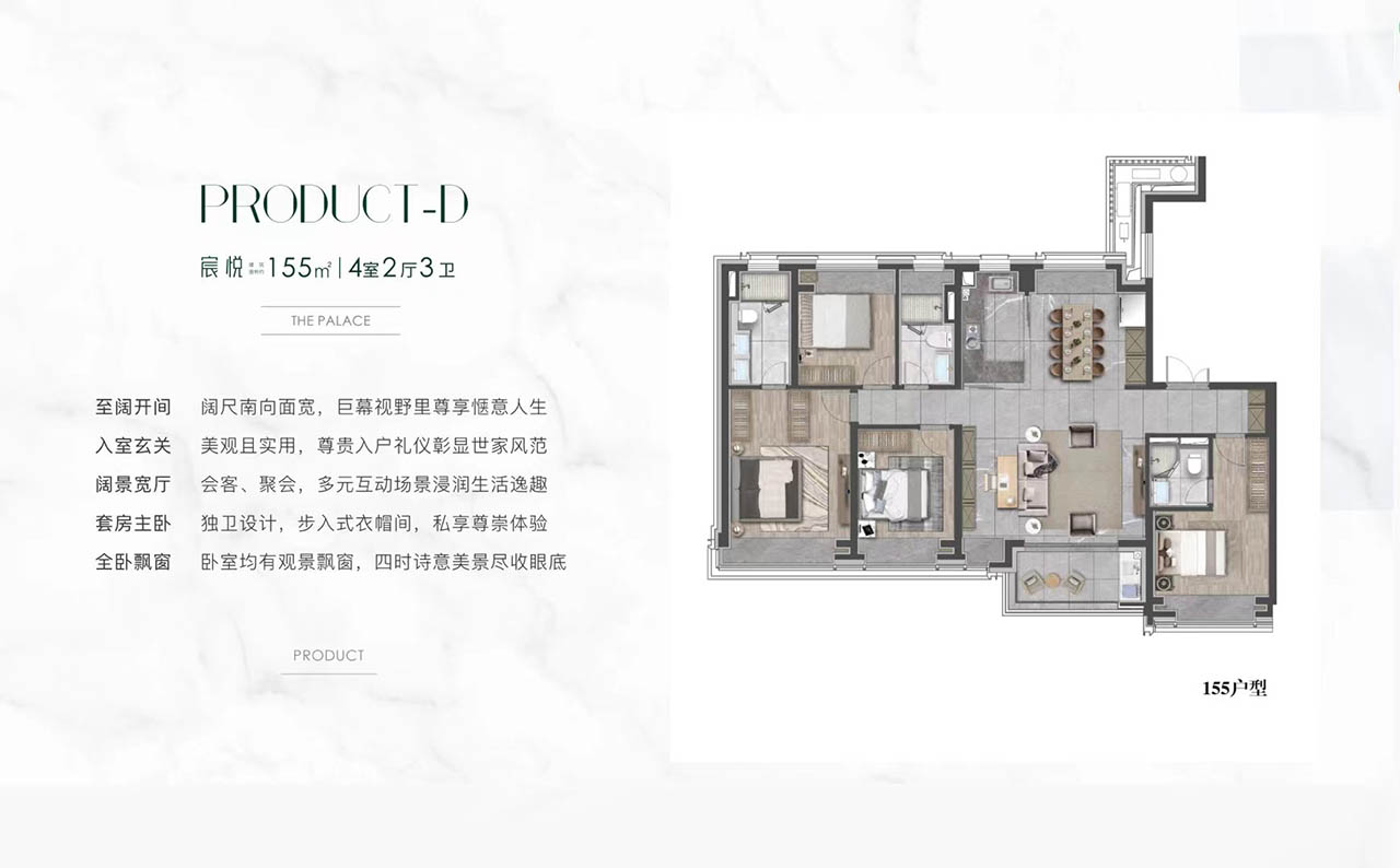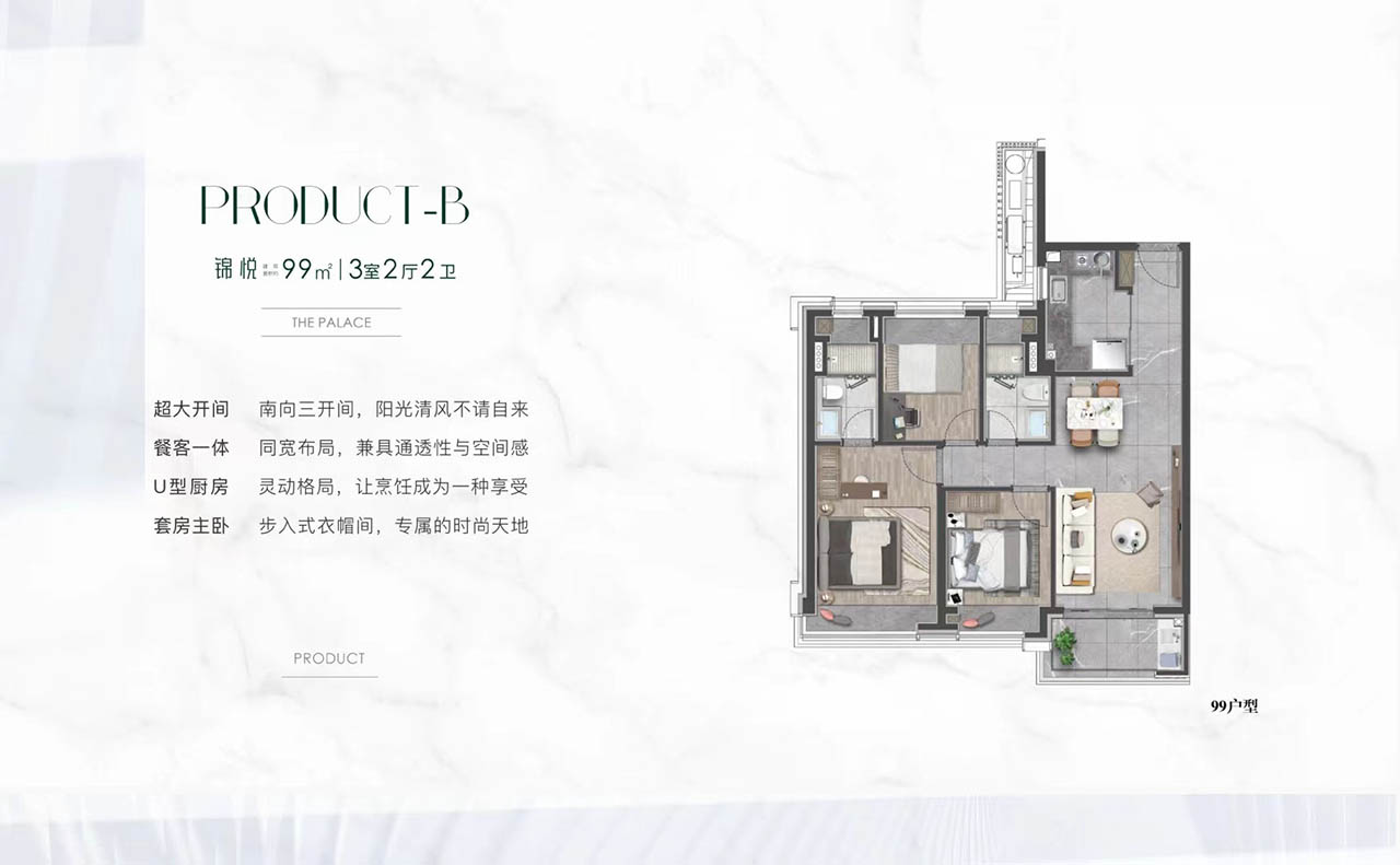 一切以居者的健康和舒适体验为前提,营造出一种用心而悦的全新生活方式:双轴一环五园景观,定格四时里的诗意风景;双入户精装大堂/地下车库,给予人车尊崇礼遇;约2000m²社区配套,含有恒温泳池、健身房等,随时享受健康运动。