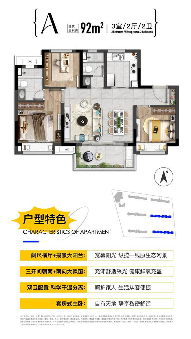 松江拥有九峰三泖,拥有珍贵广富林文化遗址与佘山山脉,现区域有逾16万亩森林保有量,约18.6%森林覆盖率。本案依双河岸而筑,仅约1.6容积率,比邻约4.4千米的南北市级生态廊道,观翠、赏景,尽享舒适鲜氧生活。