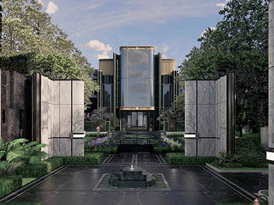 源寻海派建筑大师邬达克的笔触,以“绿房子”、武康大楼为灵感而雕刻的建筑肌理,在现代审美的转译下,弧角晶面与流金线条的交融,形成独属这个时代的立面美学,昭示着屋檐之下不言而喻的身份。