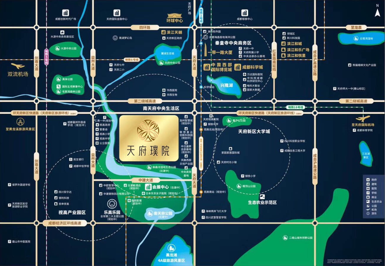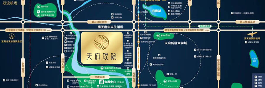 毗邻s5号线,通过天府大道等纵横城市脉络,与科学城、兴隆湖等核芯区串联,不断完善的交通;西南医科大学附属天府医院、清华附中天府学校等不断导入的配套资源让天府璞院形成了完整的生活循环。