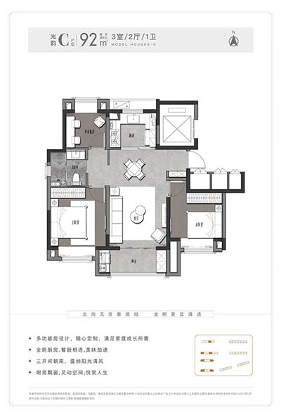 以“一带、一核、双轴”规划约7.8万㎡社区和园林空间,打造四重归家空间、十重功能空间,建面约82-133㎡精装宅邸,灵动2-4房,三开间朝南、盛纳阳光清风,悦赏全明空间,满足家庭成长所需,极具居住尊享感受。