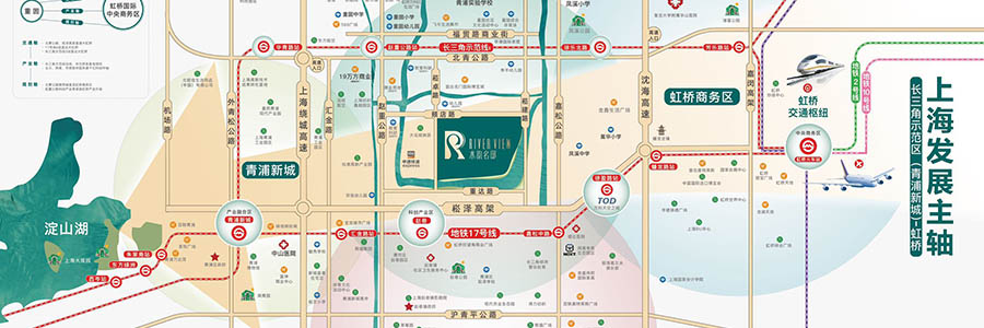 紧邻长三角示范区线(在建),三站瞬达虹桥枢纽,紧邻崧泽高架,立体交通畅达长三角以及上海市区;距离轨交17号线约2.3公里,一线直达宝龙城市广场、天空之城、奥莱商圈等,全享德达医院等和多所教育资源。